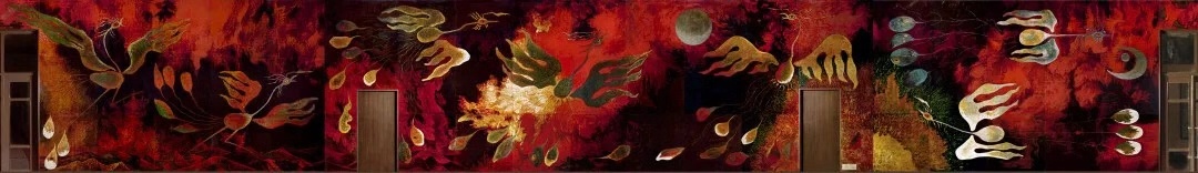 我也跟随这个“复兴”的浪潮,开始做壁画,在30多年的时间里,我与程犁合作,将作品从楚地故园做到了遥远的非洲古国埃及,为5个国家级和省级博物馆、纪念馆序厅完成过壁画作品。我们先后创作的作品主要有《楚乐》《天籁》《火中的凤凰》《绿色家园》《信息时代》《生命的归宿与起点之舞》《淞沪抗战》《华夏戎诗》以及埃及开罗国际会议中心的《埃及七千年文明史》《地久天长》等。这些作品题材跨越古今,我们努力继承历史文化传统,进行现实的创造,以艺术表达人的生存理念与诉求;在壁画创作上,研究如何将主题构思、材质形式与建筑空间实现完美统一;在壁画材质的应用方面,为适应不同风格与功能的建筑环境,进行了广泛研究。由于壁画这种大型艺术所具有的公共性、创作思想与方法的多元性、各种绘制方法兼容的综合性、美术与建筑两个学科的交叉性,常常会创造一种氛围,使人恍若置身其中。我们用心创作的这些作品因此产生广泛影响。